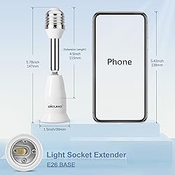 DiCUNO Light Socket Extender, E26 Light Bulb Extender, 4.5 Inch Extension, Adjustable Socket Extension Adapter, 180° Bendable, 350° Rotatable, Medium Screw Base, 1-Pack