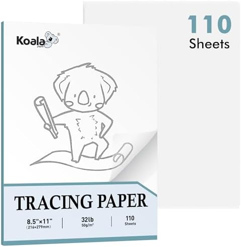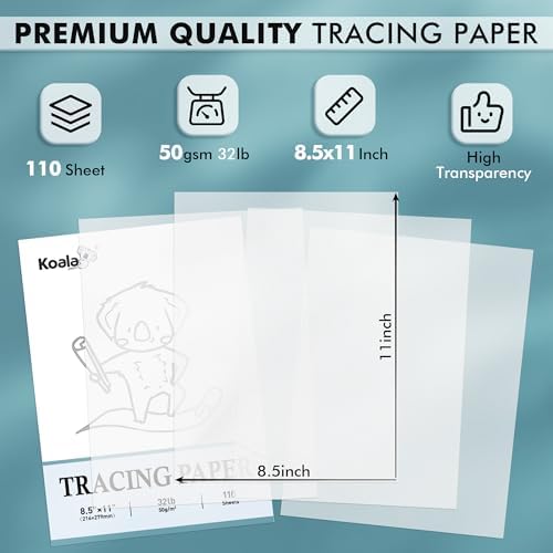 Koala 110 Sheets Tracing Paper 8.5x11 inch White Translucent Paper for Tracing, 32lb/50gsm for Trace Images, Sketch, Drawing, Overlays