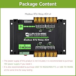 Configurable RS485 Communication: Device address is configurable (1~255), and multiple devices can be cascaded on the RS485 bus for flexible networking. Relay Control with Flash-on/Flash-off: Supports flash-on/flash-off function, enabling relay activation for a specific period before automatically turning off via command arguments. Wide Voltage Range & Isolation: Onboard voltage regulator supports 7V~36V wide voltage supply, with unibody power supply isolation for stable, isolated voltage without requiring an extra power supply for the isolated terminal. Advanced Protection Features: Includes onboard resettable fuse, TVS (Transient Voltage Suppressor), optocoupler isolation, and relay driver chip with flyback diode protection for surge suppression, anti-electrostatic, and high-voltage interference prevention. Reliable, Easy Installation: High-quality relay with a contact rating of ≤30A 250V AC or ≤30A 28V DC, housed in a rail-mounted ABS plastic enclosure with 3 LEDs to indicate MCU and signal transceiving status. Rich WiKi Resources: We provide official Wiki resources, please visit our store and click the wiki page to get resources.