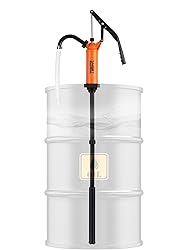 Multi-Purpose Compatibility - this barrel pump universal fit for 5-55 gallon drums with corrosion-resistant construction, safely transfers DEF, alcohol, antifreeze, and corrosive liquids Industrial-Grade Leak Protection - upgraded triple-seal technology guarantees leak-free operation, with PTFE thread seal tape included for reinforced pipe connections High-flexibility 11.6"-43.3" length-adjustable corrugated hose with stainless steel clamp ensures leak-free transfer of liquids (oil/antifreeze/DEF) with enhanced convenience and effortless operation Engineered for fast fluid transfer with 9-14 oz (266-414 mL) per stroke, this lever-action drum pump combines robust mechanics and ergonomic design to outperform traditional manual pumps in speed and reliability 3-section detachable suction tubes for drums/pails with height from 12'' to 36'', ideal choice for 55 gallon drums, rain barrel, water barrel, metal barrel and etc. rain barrel pump, water barrel pump, water drum pump, def pump, diesel pump, barrel pump 55 gallon, metal pump 55 gallon