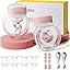 Wearable Breastfeeding Pump Hands Free of Long Battery Life, Portable Electric Breast Pump with 3 Modes and 9 Levels, LED Display, Anti-backflow, 16/18/20/22/24mm Flanges & Inserts, 2 Pack (Pink)