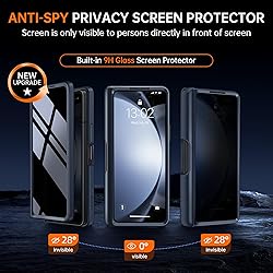 [Points to Note Before Purchase]: This case Exclusively designed for Samsung Galaxy Z Fold 5 5G (2023). NOTE: ①The S pen is NOT INCLUDED. ②The pen slot ONLY fit for Z fold5 S pen fold edition.③If you encounter any issues, like an incorrect model, a defective case, or damaged parts,please feel let us know at any time. MOBOSI's dedicated customer service team will offer you a satisfactory solution [Enhanced Magnetic Connectivity]: Samsung Z Fold 5 Case features 38 powerful N52SH magnets, this case enables effortless compatibility with a wide range of magnetic accessories, including wireless chargers, car mounts, card holders, and ring stands. While it offers versatile magnetic functionality, please be aware that due to the hinge design, some accessories may not support charging when the phone is fully open. [Sleek Foldable Kicktand]:Our Z Fold5 case with upgraded hidden kickstand allows for horizontal positioning, ideal for enjoying HD visuals during work or leisure. It seamlessly retracts into the case when not in use, maintaining a slim profile without adding extra bulk. [Protection with Built-in Privacy Screen]: The built-in anti-spy front protector shields your sensitive information from side views while ensuring optimal touchscreen responsiveness. Note: Case with built-in screen protector for Z Fold5—no extra purchase needed and please remove the original phone film before installation. [Built-in Fold5 S Pen Holder & Magnetic Hinge Protection]: S Pen Holder Design fits perfectly, you can easily to put in or take off your Z Fold5; Unique 2 in 1 hinge protection add full-coverage layer protection to the hinge, Heavy Duty Shockproof Rugged Protective Case for Z Fold5 protects your phone from scratch,and without affecting screen responsiveness