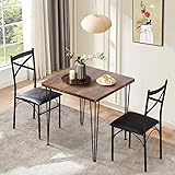 VECELO 3 Piece Dining Table Set for 2, Kitchen Table Set with 2 Chairs for Small Space, Space-Saving and Modern Design, Apartment, Easy to Assemble,Classic Brown