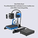 EASY TO USE: With a print size of 100x100x100mm, this small 3D printer is suitable for creating small to medium sized objects. You can easily print via USB connection for or for OS X PC, or use a storage card containing the 3D model files. Compatible slicing software, like for Easyware, for CURA, or for Simplify3D. SUPPORTED MATERIAL TYPES: This 3D printer supports a variety of 1.75mm 3D filament types, enabling you to experiment with different materials and colors. Choose basic filaments like PLA, which are user friendly and widely available, making it easier for kids to explore their creativity and print fun designs. COMPACT DESIGN: The 3D printer features a compact desktop design that can be easily placed on any table or work space. Its small footprint and open frame structure allow you to see the printing process closely and provide easy access to printed objects. The sturdy metal base and side filament holder enhance stability and usability. EASY AND QUICK ASSEMBLY: Lightweight and portable, this 3D printer is exceptionally quiet during use. After inserting the small memory card, simply press the print switch, and it will automatically start printing after preheating. The heated bed can up to 100°C in just 5 minutes. PLUG AND PLAY: Installation is super simple makes it convenient for everyone. The removable magnetic adds a new level of fun to the experience, making it ideal for home education, DIY enthusiasts, and students eager to learn about 3D printing!