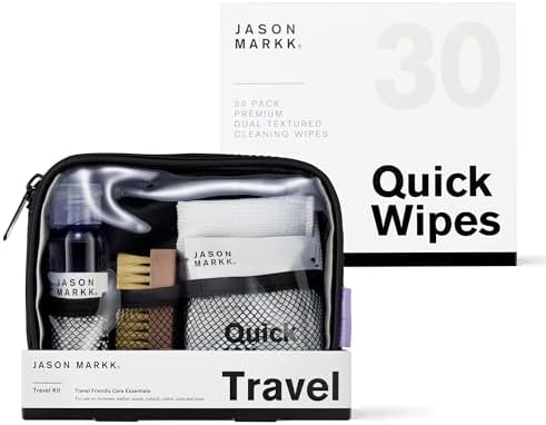 Jason Markk Travel Kit & Quick Wipes Bundle, Travel Size Shoe & Sneaker Cleaner Care w/ 30-Pack of Wipes, Ideal for Footwear, Safe for Leather, Suede, Nubuck, Cotton, Knits