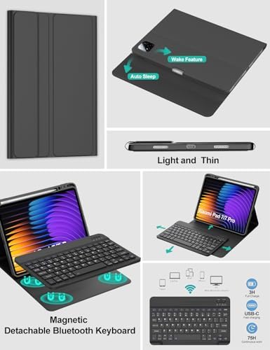 - Detachable Magnetic Xiaomi Redmi Pad Pro 11.2" Case with Keyboard - The lightweight Wireless bluetooth keyboard is removable and ultra slim. It can be attached to the case magnetically.With ABS chiclet keys, the Xiaomi Redmi Pad Pro 12.1"tablet Keyboard will offer you smooth and comfortable typing experience. Bluetooth connectivity is easy.The keyboard also includes an on/off switch to ensure you preserve battery power when not in use.
