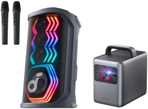 NEBULA Cosmos 4K SE Smart Projector & soundcore Rave 3S AI Karaoke Party Speaker with 2 Wireless Microphones