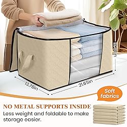 Premium Fabric: 6 pack storage containers for organizing clothing with 24 Gallons capacity; Fab totes clothes storage is made of high-quality odorless breathable non-woven fabric to keep your clothes clean and tidy; Each blanket storage bag measures 23.6 x 16.9 x 13.7 in Reinforced Handle: The storage organizer's handles are reinforced with two additional layers of thick fabric to double the load-bearing capacity;These storage bags are easy to carry and transport when you move or load heavy items Window & Cleaning: See-through window in the front allows you to quickly see what is stored inside the totes for storage; To clean, simply wipe the clothing storage with a wet towel gently and air dry Sturdy Zipper: The clothes storage organizer is equipped with two-way stainless steel zippers that may pull together; The stainless steel zipper is strong and not easily broken, ensuring a long service life for the totes Used on many occasions: The storage bins can be used in a variety of ways, not only for bedroom wardrobe, but also for baby room storage, student dormitory, tool room storage, and towel storage, to conveniently store and keep items clean.