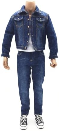 1/6 Scale Male Clothes, Denim Jacket & Jeans & White Tank Top Denim Suit for 12 inches Male Action Figure, 1/6 Street Handsome Boys Costume Outfit Blue Denim Suit Clothes Set Model
