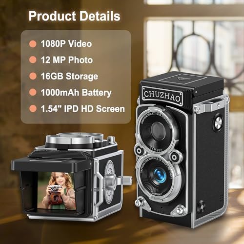- 【Nostalgic Charm of Retro Camera】The retro camera features a 1.54" IPS HD screen paired with a unique waist-level viewfinder design, allowing for easy composition with a glance downward. The classic shooting style takes you back to the golden age of film photography. The top viewfinder’s butterfly door design is not only stylish but also effectively protects the screen from scratches and bumps.