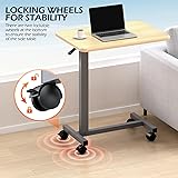 WOTURE Adjustable Overbed Table with Wheels, Bedside Rolling Table, Pneumatic Height Adjustment, Hospital Bed Table on Wheels, Standing Desk, Bedridden & Mobility Needs, Maple