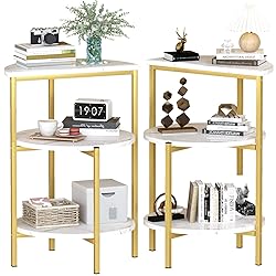 - furlinkhm Marble Side End Table Set, 3-Tier Sofa Side Table, Small Round Coffee, Table Bedside Table of 2, Corner Table w/Metal Frame for Living Room Bedroom【MODERN SIDE TABLES】 - Elevate your decor with the furlinkhm Marble Side End Table Set, featuring a luxurious metal frame in polished chrome and a stunning glossy white faux marble tabletop with gray veining, perfect for enhancing any living room or bedroom.【DURABLE COFFEE TABLES】 - Crafted for longevity, these bedside tables boast a smooth surface that ensures easy maintenance. With non-marking foot glides, they safeguard your floors from scuffs and scratches while maintaining their elegant appearance for years to come.【MULTIFUNCTIONAL END TABLES】 - This versatile 3-tier table set is lightweight and space-saving, making it ideal as a greenery plant stand, side table, bedside table, or even a coffee end table for snacks and drinks—perfect for any apartment or spacious home.【ELEGANT LIVING ROOM TABLE SETS】 - Designed with clean lines and an open frame, this gold accent coffee table serves as a stylish addition to your living room, allowing you to display magazines, beverages, or decorative pieces effortlessly.【EASY ASSEMBLY】 - Enjoy hassle-free setup in just 15 minutes with three simple steps: assemble the legs, attach the tabletop, and flip your new end tables over. Overall dimensions are 13.7"(Dia) x 23.8"(H), with a weight capacity of 70lbs, making them practical for daily use.