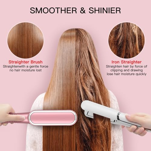 Hair Straightener Brush,Ionic Hot Comb for Women with 20s Fast Heating, Anti-Scald & Dual Voltage,Straightening Brush for Curly & Frizzy Hair (Rose Gold, Large)