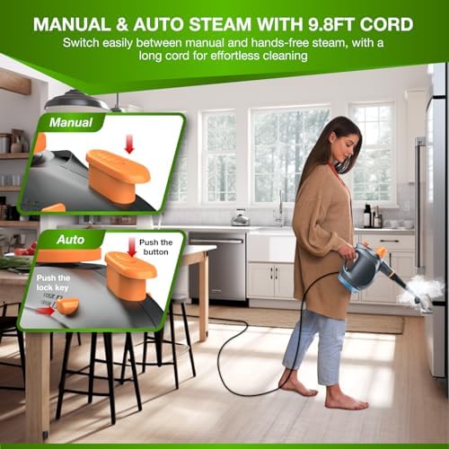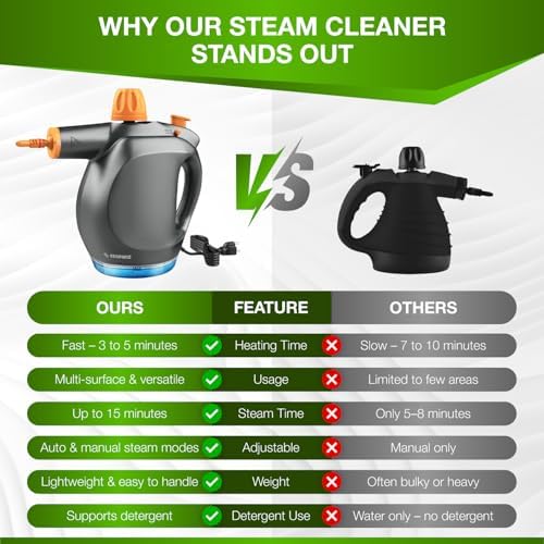 - [SAFE FOR FAMILY & PETS] – Naturally clean surfaces using steam, reducing reliance on harsh chemicals. This handheld steam cleaner is ideal for homes with children, pets, and allergy-sensitive individuals, creating a cleaner environment without chemical residues.