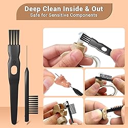 CLEANS ALL MODERN HEARING AIDS - Compatible with rechargeable Bluetooth models (including charging cases), and also compatible with Oticon & Phonak. Safely removes earwax, dust, and debris from sensitive parts ALL-IN-ONE CLEANING TOOL - Features a precision pen, brush, spray, cloth for sound tubes, microphones, battery compartments, and even earbuds/ear molds. No more struggling with hard-to-reach spots REUSABLE & GENTLE - Soft nylon bristles and a magnetic tip (for battery handling) won’t scratch. Built to last for long-term hearing aid maintenance COMPACT & TRAVEL-READY - Stores neatly in a lightweight case - ideal for on-the-go cleaning at home or away HASSLE-FREE GUARANTEE - Backed by our 30-day money-back service. If you're not satisfied, we'll make it right - just contact our friendly customer support