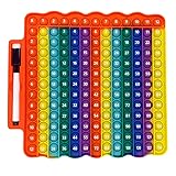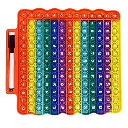 - Transform multiplication learning into an engaging sensory experience with this innovative Pop It math game! This colorful educational toy features a complete multiplication table from 1-12 presented in vibrant rainbow colors. Each bubble can be pressed with a satisfying pop, making learning tactile and fun. The board includes 144 numbered bubbles arranged in a clear, easy-to-follow format, perfect for visual learners. Comes with a marker for practice and additional activities. The rainbow color-coding helps children recognize patterns and relationships between numbers, making multiplication facts easier to remember. Ideal for elementary school students, this versatile learning tool combines fidget toy satisfaction with practical math education. Use it for times tables practice, number pattern recognition, or simple counting exercises. The durable design allows for repeated use, while the portable size makes it perfect for learning at home or on the go. Great for both individual practice and interactive learning sessions with parents or teachers.
