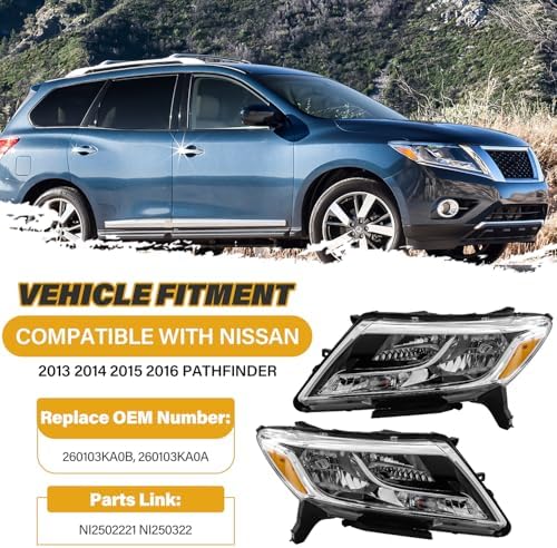 - 【EXACT OE FIT】: LIWEDFG Headlight Assembly is compatible with Nissan Pathfinder 2013 2014 2015 2016 2017, Halogen Type Replacements, High/Low Beam Bulbs are Not Included. Please check the Appearance, Plug and OE Reference numbers to make sure you are getting the correct replacement part for your vehicle