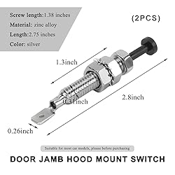 Outstanding Quality: Made of nickel-plated iron, these door pin switches are highly corrosion-resistant, not easy to rust, and can adapt to harsh application conditions. The push actuator is made of high-quality plastic, which is not easy to break and is suitable for long-term use Adjustable Length: These bonnet light hood momentary switches utilize an adjustable design to accommodate different needs, allowing for flexible applications. Simply adjust the two retaining nuts to the proper position to achieve your desired length Well Functioning: Our door pin switches work well with their spade terminals to connect or disconnect the circuit. With the push rod extended, the terminal contacts the switch body, thus connecting the circuit. Press the push rod in so the terminal does not contact the switch, which opens the circuit Product Parameters: This adjustable door latch switch is an on/off momentary switch rated at 20A 12VDC. Its overall length is 70mm (2.8 inches), spade terminal width is 6.5mm (0.26 inches), thread length is 33mm (1.3 inches), and the thread diameter is 8mm/0.31 inches Widely Applied: These universal car door latch switches are widely used in electronic door lock switches of cars, trucks, SUVs, and more. They are suitable for chassis lights, ceiling lights, hood anti-theft switches, trunk automatic open/close luggage alarms, and so on