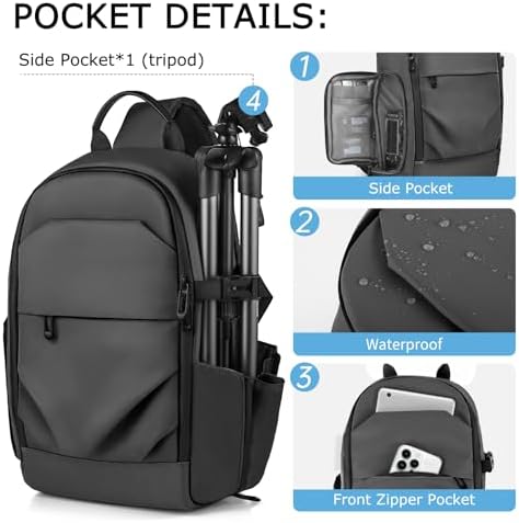 - 【🛡️Premium Waterproof Fabric & Thick Inner】: Crafted from durable nylon with thick inner padding for enhanced protection, The thickness of the camera bag and the dividers exceeds 8mm, which can well protect your precious camera; Water-resistant and tear-proof design keeps your camera safe in all weather.