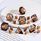 Resin DND Dice Set : One set dice total 7 pcs including D4, D6, D8, D10, D12, D20 and D%(00-90). Mushroom/Animal DND Dice Set:Each dice is filled with a lovely mushroom/Animal. Make more fun to your game Easy to Read & Well Balanced: This creative dnd dices uses rose-gold fonts to form a strong contrast with the transparent resin, which is easy to read, so you can focus more on the game. At the same time, the injection molding process ensures the balance of the d&d dice, every roll is perfect, and the fairness of the game is guaranteed. Uasge - The 7-die dice set is perfect for Dungeons and Dragons, RPG, MTG, Shadowrun, Pathfinder, Yahtzee, math games, and other table games etc The Perfect Gift: This dice set is compatible with DnD and many other polyhedral dice role playing games. It's an ideal and thoughtful gift for rpg gamers, and dice goblins