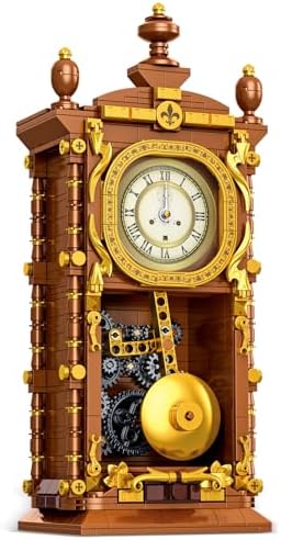 Vintage Swing Clock Building Blocks Set – 751 PCS Real Working Mechanical Clock with Alarm, Moving Pendulum & Rotating Dial, Retro Steampunk Decor Gift for Adults & Teens, Compatible with Lego Sets
