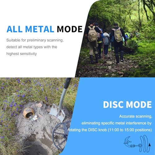 - 【Professional Metal All Metal & DISC Modes】 Perfect for detecting all types of metals (coins, relics, jewelry) or filtering trash (iron, nails) with precision. High sensitivity ensures deep detection (optimal detection height of 0.39-1.93" from the ground), ideal for beaches, grasslands, and fields