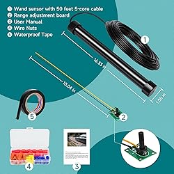 Tips: After our technical team conducted calculations based on geological factors in the United States, we recommend that the probe be buried 5 to 10 inches underground, with the maximum depth not exceeding 12 inches. You can adjust it according to factors such as sensitivity and terrain conditions Provide Everything You Need: WAND Sensor with 50 ft 5-Core Cable*1, 40 PCS Wire Connectors, Range Adjustment Board*1, Electrical Tape*1, Detailed Manual*1 Compatibility: Compatible with most automatic door openers. When the vehicle approaches, our device will automatically activate the "no manual operation required" function for the door opener. Perfectly compatible with door opening systems such as Mighty Mule, Ghost Controls, LiftMaster, TOPENS, etc. Please check your door opener model before purchase Easy Installation: Connect the cable to the door opener control panel, Install the wand over 25 ft from the fully open gate, bury it 5-10 inches deep and maintaining a distance of 8 inches of the driveway edge, and allow 60 seconds of calibration after power-up with no moving metal objects nearby for the best results Sensitive Sensing: Equipped with a precise sensitivity adjustment knob, simply rotate it and you can customize your detection area within a range of 2 to 12 feet, it can reliably detect various types of vehicles, effectively preventing false triggers caused by small animals or non-vehicle objects. Each departure is more reliable and smooth Core Function: When our exit sensor detects a moving vehicle, it will automatically activate the door opening system to open the door, allowing you to enter and exit freely without the need for a remote control or keyboard. This enables your family, visitors, and business clients to enjoy the convenience and sophistication of effortless passage Fully Sealed Waterproof Design: The sensor adopts a fully sealed waterproof design. The standard 50-feet 5-core buried cable with reinforced connectors can effectively prevent water ingress and cable damage, and can operate stably and reliably for a long time in various extreme weather conditions ranging from -4°F to 125°F (-20°C to 52°C)
