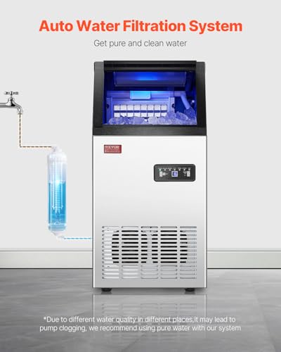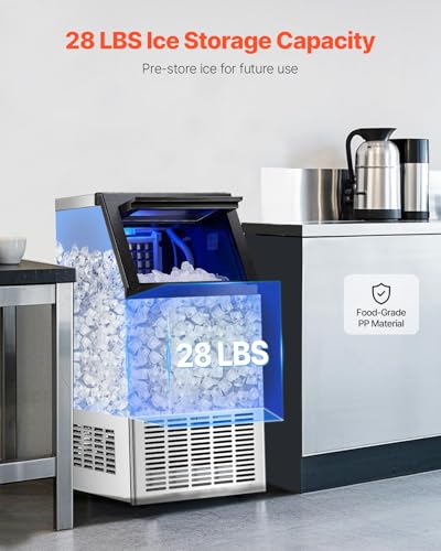 VEVOR Commercial Ice Maker, 100lbs/24H Ice Maker Machine with 28lbs Storage Capacity, 40 Ice Cubes in 15 Minutes, Freestanding Ice Maker for Bar Home Office Restaurant, LED Display, Self-Cleaning