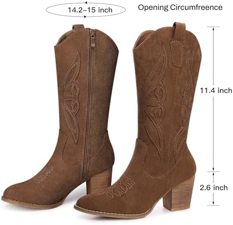 SHIBEVER Cowboy Boots for Women 2025: Mid Calf Cowgirl Boots Western Embroidered Country High Heel Pointed Toe Booties