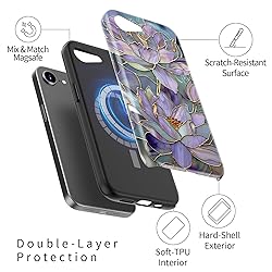DorisMax for iPhone 16e Case - Wireless Charging Compatible - Dual-Layer Hard Shell + Silicone Cover - Shockproof Protective Phone Case with Stylish Designs for Women - Abstract Lotus
