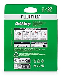 Pre-loaded with ISO 400 speed film with 27 exposures per camera Built-in 10’ flash range and a continuous flash switch 2 pack - Total 54 exposures