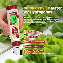 Multi-parameter Digital Pool Water Tester:GIDIGI 6 in 1 meter effectively measures pH,salinity,ORP (Oxidation-Reduction Potential),TDS (Total Dissolved Solids),EC (Electrical Conductivity),and temperature.With automatic temperature compensation,you no longer need to worry about temperature affecting the readings of other water parameters when monitoring your pool or aquarium.The pool salt pH tester upgrade pH and ORP meter is a fantastic choice for anyone serious about maintaining. pH ORP Salt Meter for salt pool:In a salt pool this professional ORP pH tester can accurately detect the pH ORP salt and temp value in the swimming pool water,ensuring the cleanliness of the pool water.Therefore,generally speaking,it is best to keep the pH value in the swimming pool at 7.2-7.8.Salt values are generally between 2700-3400ppm.User friendly design,clear and bright LCD screen,and reliable performance make it a great investment for maintaining optimal water quality. Hydroponic pH and PPM Meter: In DWC hydroponics, you can use multi purpose pH tester to easily monitor ORP/EC/TDS/temperature/pH.The pH value of the nutrient solution used by most plants is 5.5-6.5.The pH EC TDS tester with ATC function can help you use to check the pH and ppm runoff of your plant water when watering. to ensure the best growth of the plants. Given its affordability and functionality,it’s the best investment in ensuring the nutritional health of your plants. Newly Updated Sensitive ORP Meter:ORP is a measure of the sanitizing ability of the water,also a measure of the pool's salt oxidation capacity or cleaning strength. Measuring ORP tells you if the water can actually sanitize. A reading between 650 and 750 mV is ideal at the tap and saltwater pool. You can also use ORP to determine if you in home filter is removing chlorine from your treated water. If the filter is working then the ORP should be significantly lower after filtering. Multi Purpose ORP Tester: GIDIGI 6 in 1 meter Suitable for edible salt,koi ponds, saltwater fish ponds,brewing, hydroponics,spas, hot tubs,beer making, brew kombucha drinking water and more.GIDIGI TDS meter is calibrated before leaving the factory,with 222mV ORP calibration solution provide 24 hour customer service response,please contact GIDIGI by amazon or email in time.We will reply within 12 hours and do our best to satisfy customers. Choose GIDIGI pH meter to solve all your worries.
