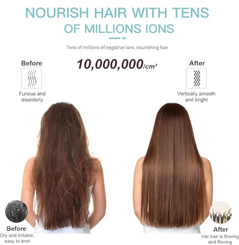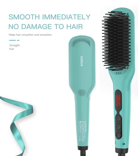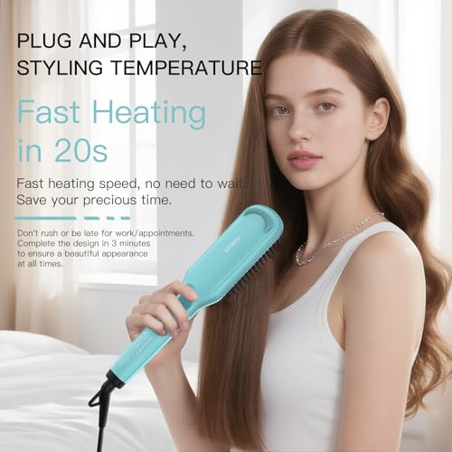 Azeus Ionic Hair Straightener Brush, Adjustable 30s Fast MCH Ceramic Heating Hair Straightening Brush with Anti Scald Feature, Frizz-Free Shine & Hair Repair (Turquoise Blue)