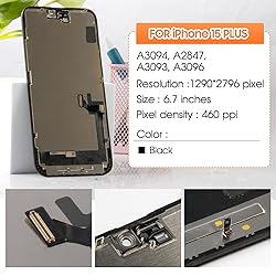 👀【Perfect Fit & Full Compatibility】Designed exclusively for iPhone 15 Plus (Models A2890/A2892), seamlessly integrates with original structure. Supports Face ID, Ambient Light Sensor, and Dynamic Island. Note: iOS updates may trigger "Non-Genuine Part" alert, but all functionalities remain unaffected. 🌠【Crystal-Clear Display & Military-Grade Protection】High-transparency LCD panel with 2796×1290 resolution and P3 wide color gamut delivers near-OEM visual quality. 9H tempered glass + oleophobic coating resists scratches, fingerprints, and secondary cracks. ✨【15-Minute DIY Installation】 – Includes pro toolkit (suction cup, screwdrivers, pry tools, adhesive strips) .You can go to youtube and search for the installation guide video.No tech skills needed. 480Hz touch sampling rate ensures lag-free gaming. 🎁【Rigorous Quality Control】Every screen undergoes 72-hour aging tests to eliminate dead pixels, light bleeding, or flickering. Backed by 90-day warranty 👍【1/5th OEM Price, 100% Daily-Driver Ready】Budget-friendly solution for cracked screens or refurbished devices. Supports 4K video playback & True Tone adjustment (enable manually in Settings).