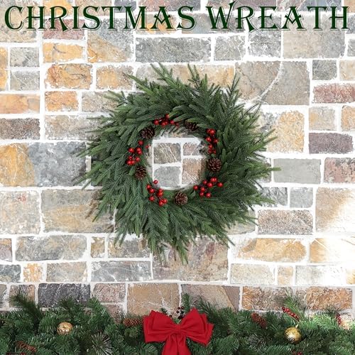 - Realistic & Maintenance-Free – Crafted from high-quality plastic with ultra-soft textures and zero odors, this Christmas wreath stays vibrant throughout the holiday season without fading or shedding.
