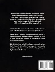- A collection of short stories written in screenplay format. All stories contain elements of the human condition. Greif, anger, coming-of-age, and acceptance. The goal was to put these into films, but I found that people love the speed a script reads while also being detailed. Inside are three stories and they are as follows;Skinwalker: A couple take their honeymoon on a beautiful resort to only find out that the island isn't what it seems. (Thriller/Action)Nine To Five: A recent high school graduate needs to complete his summer project before he starts his first year of film school. His subject of choice might've been something he didn't quite see coming. (Coming-of-age/Dramedy)Concubine: A man suddenly loses his partner in a tragic accident. Shortly after, he finds himself in a love triangle with a new muse that could be exactly what he needs to heal and accept the past. (Psychological thriller/Suspense)