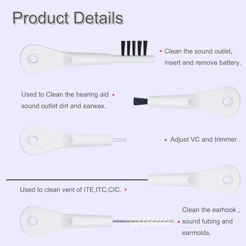 - Multi-Functional Cleaning Brush: 5 different hearing aid cleaning brushes catering to various earbuds,headphones,airpods ,hearing aid models (BTE, ITE, etc.)