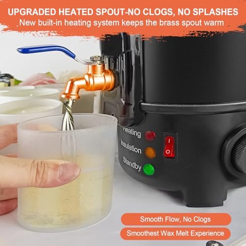 - ✔ DESIGNED TO POUR - NO CLOGS, NO SPLASHES: Tired of drippy plastic spouts that clog and splash? Not with the M4! Our brass valve is built to last, and the specially designed heating spout ensures a smooth, steady flow of wax—no clogs, no splashes, just perfect pouring every time. Plus, the see-through lid eliminates the guesswork, letting you monitor the melt status in real-time.