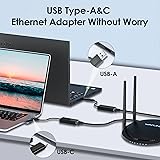 2.5G USB LAN Adapter - Gigabit RJ45? It's toooo slow. Our 2.5G USB LAN adapter equip with integrated RJ45 ethernet port, supports 2.5 Gbps network speed. Nothing else, just fast, just cool! Note: The actual network speed limited by your network devices. USB Type-A&C Ethernet Adapter - USB-C port? USB-A port? Why do I need to choose it and waste time? Then try this! USB type-A&C ethernet adapter. It comes with USB type-A&C interface, you don't have to worry about the interface adaptability problem, just use it directly! It's so cool! Widely Adaptable - It compatible with any USB-C and USB-A desktops, laptops, PCs, iPad and ultrabooks. It compatibility with Windows 7/8/8.1/XP/10/11, Mac OS 10.6 or later. It compatible all Thunderbolt 3, Thunderbolt 4, USB 3.2 (3.0/3.1), and 2.0 hosts. (USB 2.0 will limit the performance of the adapter.) More Design Detail - Its palm size of 2.6 x 1.1 x 0.6 inches and light weight of 76g/2.7oz allow you to carry anywhere. Adopts a proven RTL8156B chipset to maintain ultra-fast, stable and secure data streaming. With two-color (green/amber) LED indicators, you can easily obtain the working status of the device. Note - NOT Compatible with ARM-based Windows RT and Windows Mobile, most Android devices, TiVo Series 2, Wii, or other non-PC/Mac platforms. Older versions of Windows, Linux, and Mac OS may require a driver download for the adapter to function. Older Mac OS versions will have limited functionality (1Gbps link rate, no jumbo frame support) until the driver is intalled. Please refer to the manual for the driver.
