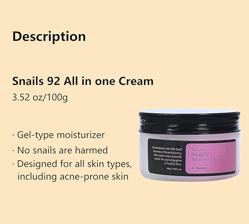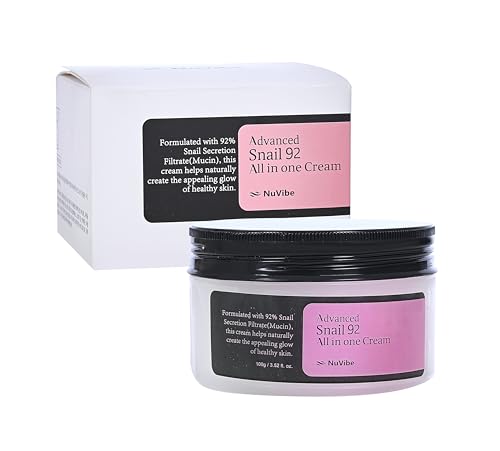 NuVibe ADVANCED Snail Mucin 92% Repair Moisturizer – 3.52 Oz (100g) Hydrating & Lightweight Korean Face Cream for Soft, Glowing Skin – Soothing Moisturizer for Dry, Sensitive & All Skin Types.