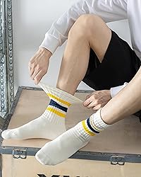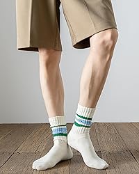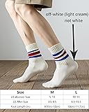 【Medium Size: Women5-10/Men3.5-8.5】 【Large Size: Women10-15/Men8.5-13.5】 【Socks are not white, but off-white (light cream).】 80% combed cotton delivers feather-soft breathability for all-day wear, indoor or outdoor. Seamless toe stitching eliminates bulky seams, reducing friction for sensitive feet. Slouch-ready scrunch cuffs with color stripes adapt to ankles without tightness or slippage. Retro crew height stacks neatly or lays flat, pairing with sneakers/boots for urban adventures. Men & women tackle light jogs, brisk walks, or errands with non-restrictive flexibility and zero distraction.