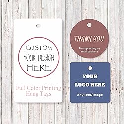 - Introducing our custom tags - the ultimate way to add a touch of personality to your handmade creations, gifts, businesses, and special occasions like weddings and birthdays! With options ranging from 1.5 to 3 inches and the ability to customize with your logo or text, these tags are the perfect finishing touch. Choose between 100 to 500 pieces, and decide whether you want them with or without pre-punched holes. Without holes, they're perfect for placing directly in gift boxes or party favors. With holes, get creative by hanging them with twine or pins on gift bags or flowers for that extra flair. Printed with crisp detail, finished with a matte coating, these tags are not just labels - they're a classy, textured statement piece that adds a touch of sophistication to any item. So why settle for boring tags when you can go custom all the way with our custom tags? Let your creativity run wild!