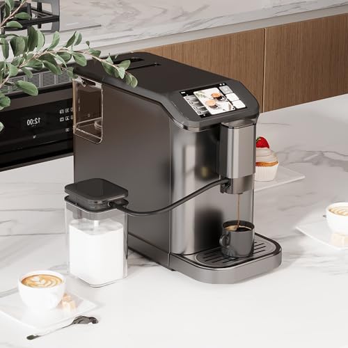- LCD Touch, Your Flavor Playground: Our 20 Bar coffee machine effortlessly brews 6 barista recipes—espresso, cappuccino, latte macchiato, and more. The sleek touchscreen controls let you multitask like a pro, ensuring your breakfast prep is seamless while your perfect coffee flows