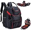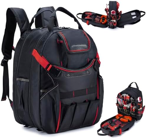 KSIBNW Tool Backpack Heavy Duty for Men, 45-Pockets Organizer Bags with Laptop Compartment,Durable Tool Carrier with Charging Port for Eelectrician Construction Mechanic Work, Black and Red