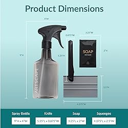 RECOMMENDED KIT FOR Artscape WINDOW FILM: Created by the brand for the most successful installation of Artscape window films. This kit will also work for most static cling window films on the market. SIMPLE AND SAFE APPLICATION SOLUTION: Packaged with a 10 oz spray bottle. Our easy to mix soap and water solution helps with application of the film to the glass. EASY-TO-USE BLADE: Sharp retractable blade for cutting films which locks in and out of place for safe handling. SQUEEGEE FOR EASY INSTALLATION: Includes a 2.75" x 4.25" squeegee with a soft rubber edge making it easy to apply the film to glass and remove air bubbles trapped between the film and window. USE FOR CURRENT AND FUTURE INSTALLATIONS: When application solution runs out, simply mix a small amount of kitchen dish soap with water for any future static cling window film installations. DETAILED APPLICATION INSTRUCTIONS INCLUDED.