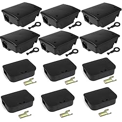 Dual‑Size Storage Solution (Device Only) Includes 6 large boxes and 6 compact boxes designed to securely store standard non‑chemical blocks (not included), giving you versatile placement options throughout your home, garage, or yard Secure Lockable Design: Each bait station features a key-required locking mechanism to keep, pets, and non-target wildlife safely away from the contents. Simply turn the matching key to open and reload with your preferred standard bait blocks Crafted from durable ABS plastic, these mouse and rat bait stations are built to withstand rain, impact, and other outdoor conditions. Each unit features a secure, sealable lid that helps keep contents protected from dust, moisture, and debris—ideal for reliable use in both indoor and outdoor environments Flexible Placement Options: Large stations mount vertically or horizontally on walls, fences, and foundations. Compact stations tuck discreetly under furniture, inside cabinets, or in any tight corner—perfect for where mice like to hide Unlock with the included key, insert blocks (not included), then relock. When it’s time to refresh, simply open, swap in new blocks, and close—no spills, no residue, continuous security
