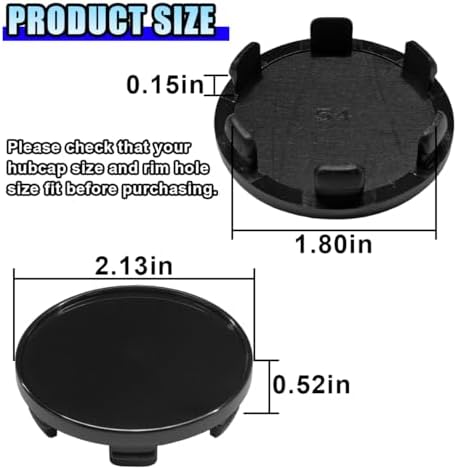 - 【Size Specification】: This car wheel center cap has a precise size design, the inner diameter is 1.85 inches, the outer diameter is 2.13 inches, which can fit the center part of most car wheels on the market. However, to ensure a perfect match, please be sure to carefully measure the size of your vehicle's wheel before purchasing.