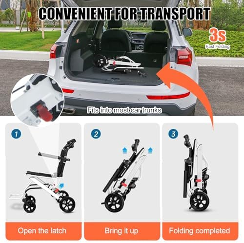 - ✅𝐇igh 𝐐uality 𝐋ightweight 𝐌aterials and 𝐃urability-Our portable wheelchair wheelchair is crafted from a super-strong yet lightweight carbon steel alloy, this wheelchair offers easy portability and durability. Ideal for travel, the frame ensures effortless transportation and maneuverability.