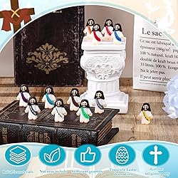 Sufficient Quantity: you will receive 12 little jesus figures, measuring approximately 1.2 X 1.4 inches/3 x 3.5 cm, in rich colors; Whether applied in Sunday school, vacation Bible school or as party favors, these tiny jesus figures promote shared experiences and facilitate discussions about faith and values in a fun and engaging way Reliable Material: our baby jesus figures are made of rubber material, with a sturdy and smooth surface, not easy to fade, deform or break, and the materials are reliable and safe, ensuring that these precious items can be preserved as priceless souvenirs; Exquisite details make religious Jesus statues desirable, emphasizing the festive atmosphere Original Jesus Gift: you can hide the jesus figures in a conspicuous place or put it in the hands of others; You can share this little Jesus you found with others; Find him, take him, keep him, share him; We truly believe that everyone needs them Religious Party Gifts: hand out our little Jesus toy as party gifts so you can show and tell others about your faith; These little Jesus dolls are not only Easter decorations, but also souvenirs of the significance of Easter celebrations, and can be applied for churches, school outings, and other religious events Suitable for Various Occasions: these mini jesus figures are not only suitable for religious education; They are flexible enough for a variety of occasions; Use them for Easter egg hunts, Christmas celebrations, or as thoughtful gifts for friends and family; Their versatility makes them a delightful addition to any event, adding a touch of faith and joy to the celebration