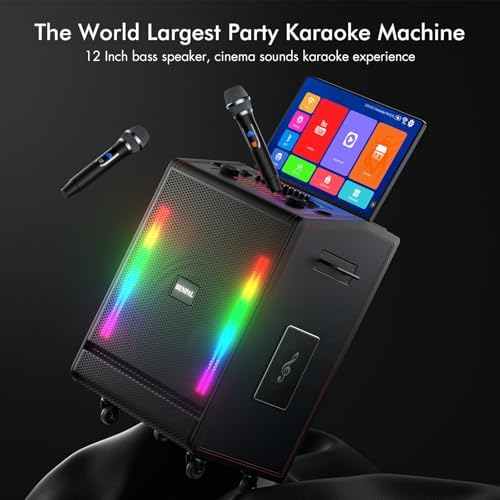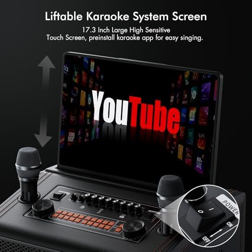 Smart Karaoke Machine with 17.3 Inch Touch Screen & Lyrics Display, Up to 1200W Powerful Speaker, Super Deep Bass Sound for Home Party, Outdoor - Perfect for Adults, Kids, Singers & Music Lovers